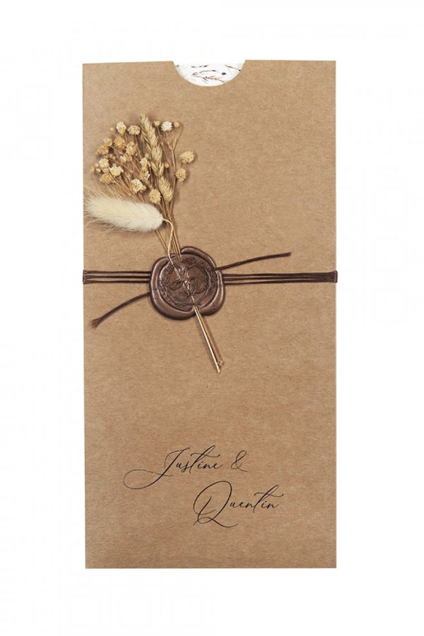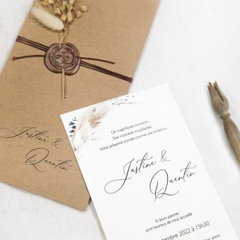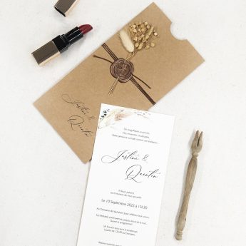 Composantes du produit : pochette :carton craft - 300 gr / carton d'invitation : White - Classic Linen - 350 gr