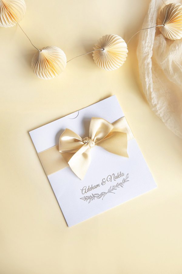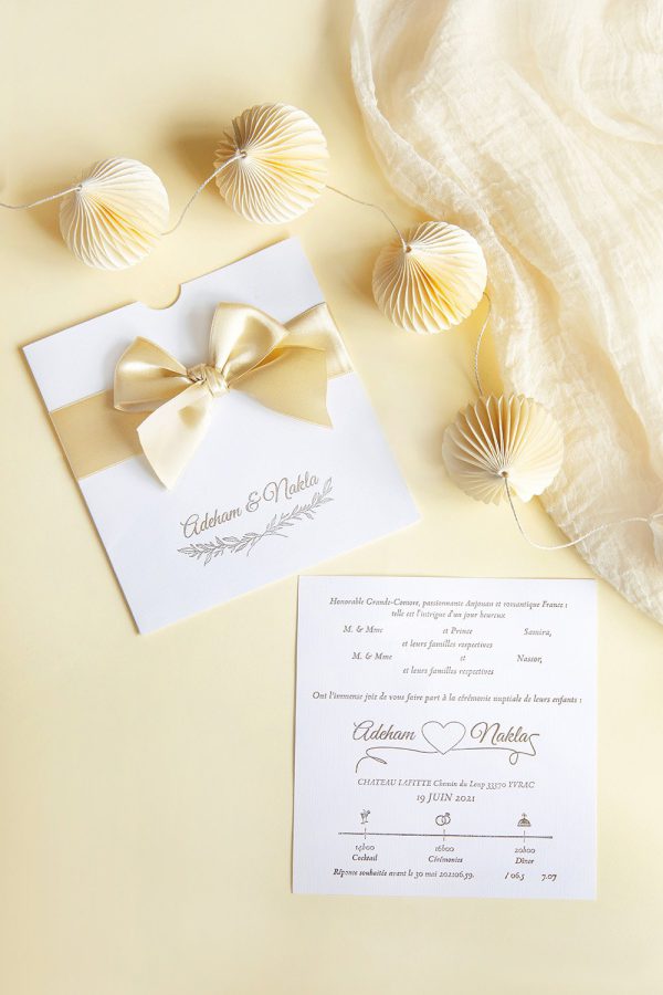 Composantes du produit : pochette : papier toile blanche 250 gr - cartons d'invitation : papier toile blanche 250 gr