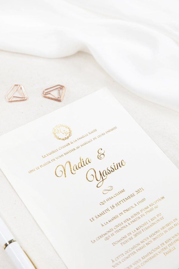 Composantes du produit : pochette : papier calque / carton d'invitation : American Bristol 250 gr